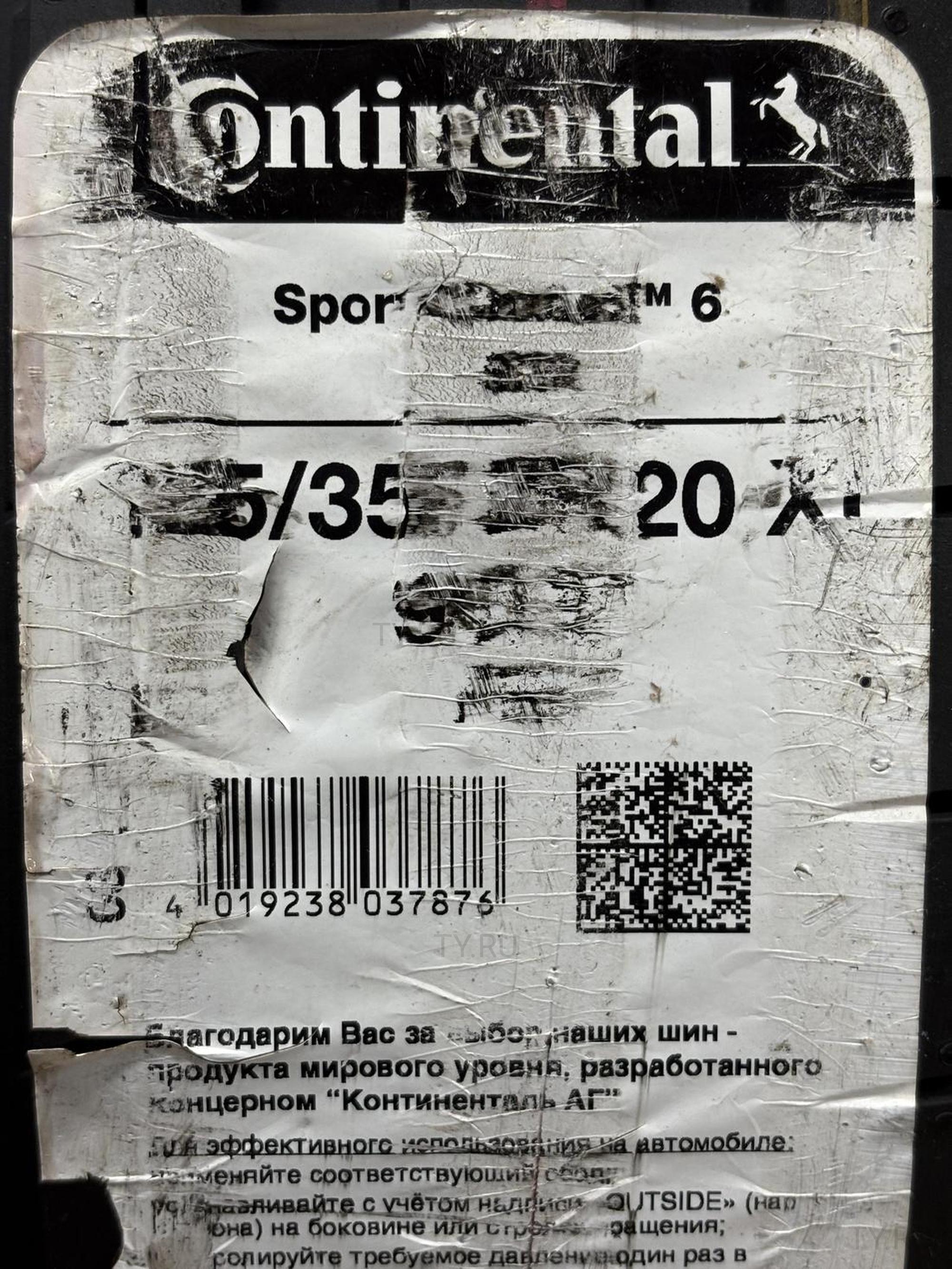 Continental ContiSportContact 6 225/35 R20 ZR FR 90Y XL (2021 г. в.)